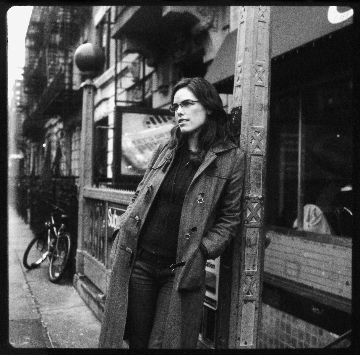 Really nice feel to this photograph, works well with the background. Especially like how the left side of the frame seems to have a stripe of light near the edge. - pat That is awsome. The subject is clearly very very cool. - Lola you photograph some dynamic women. a phd in what, i wonder? - kate That's the most beautiful woman I've ever seen. - In History! Hi Beth. - Anonymouse Lovely, just lovely. Like the grain and the square format. - Julie - www.juliekimphotography.com