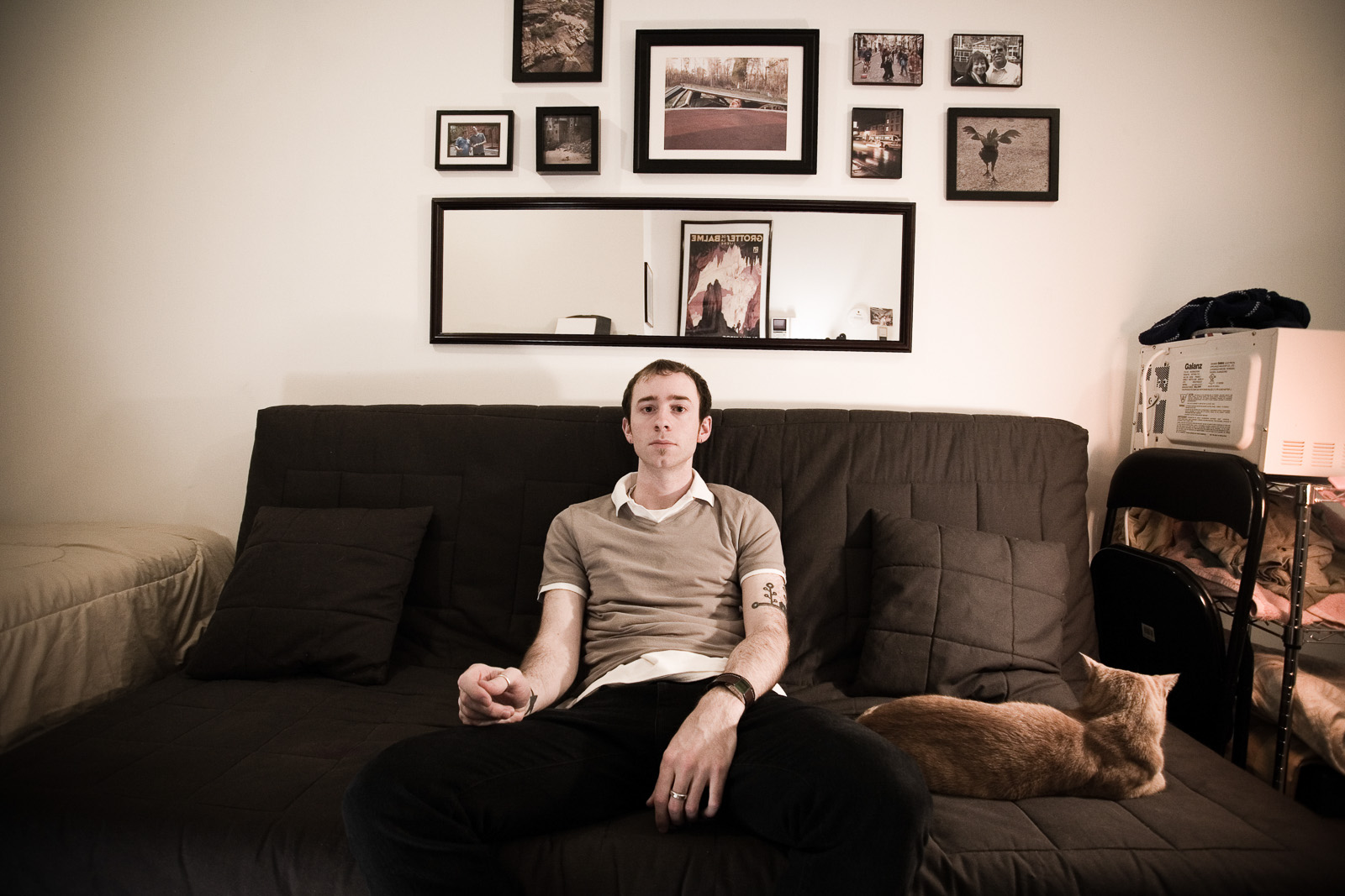 I love how the cat's backside is facing us, as to not steal the shot. I love all of them so far. - Bonny - noodlescar.com great pose(s), moody color reflecting subjects emotion, great great great! - cass should we be captioning these? "get out of here so i can continue masturbating to baywatch." - rudy That last commet was quite off color and innapropriate. This photo doesn't suggest anything so crude. I like how the room is almost cluttered but still appears almost stark. It catches the mood beautifully. - Audrey Hahaha, funny about the Baywatch comment, good times. Thanks for the great shot, Bill! - Andrew - http://nyc.pixelparlor.com "rude"y is right. - kate This entire photo looks like a still out of a Wes Anderson film. - Carly