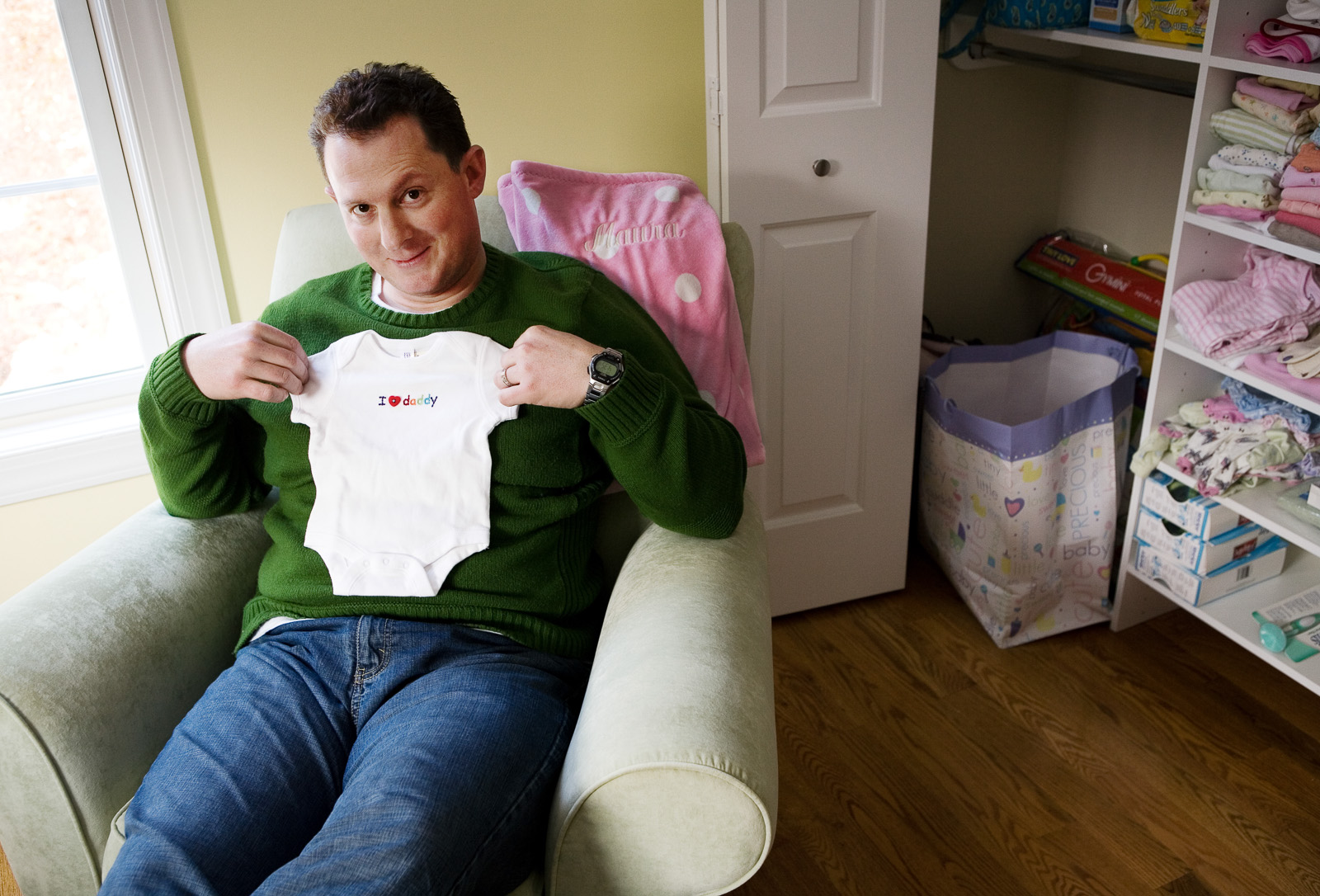 The onesy is cute as are all of the clothes behind as backdrop, but if there is anything naturally sexier than a mischievous looking proud daddy I do not know what it is. Way to catch the face that speaks of it! Oh, I just saw the caption! The little one has not arrived yet. All of that planning the background now reveals, yep, that makes him sexier by like 1000x. Oh, he'll make more. He must!