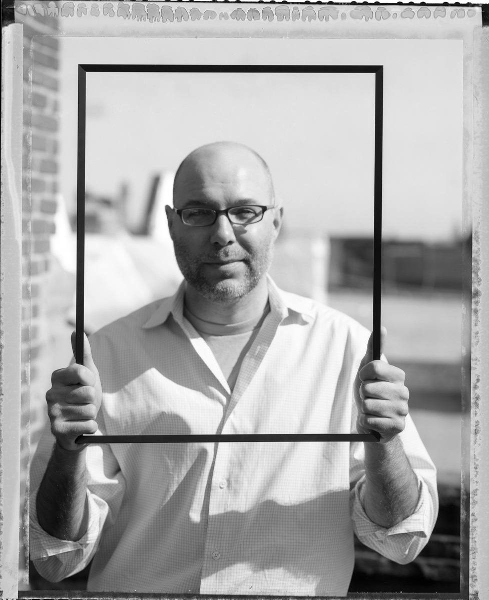 I love how the black frame really contrasts with the rest of the picture (but it also reflects his black glasses too). It reall makes him pop! Great as always!
