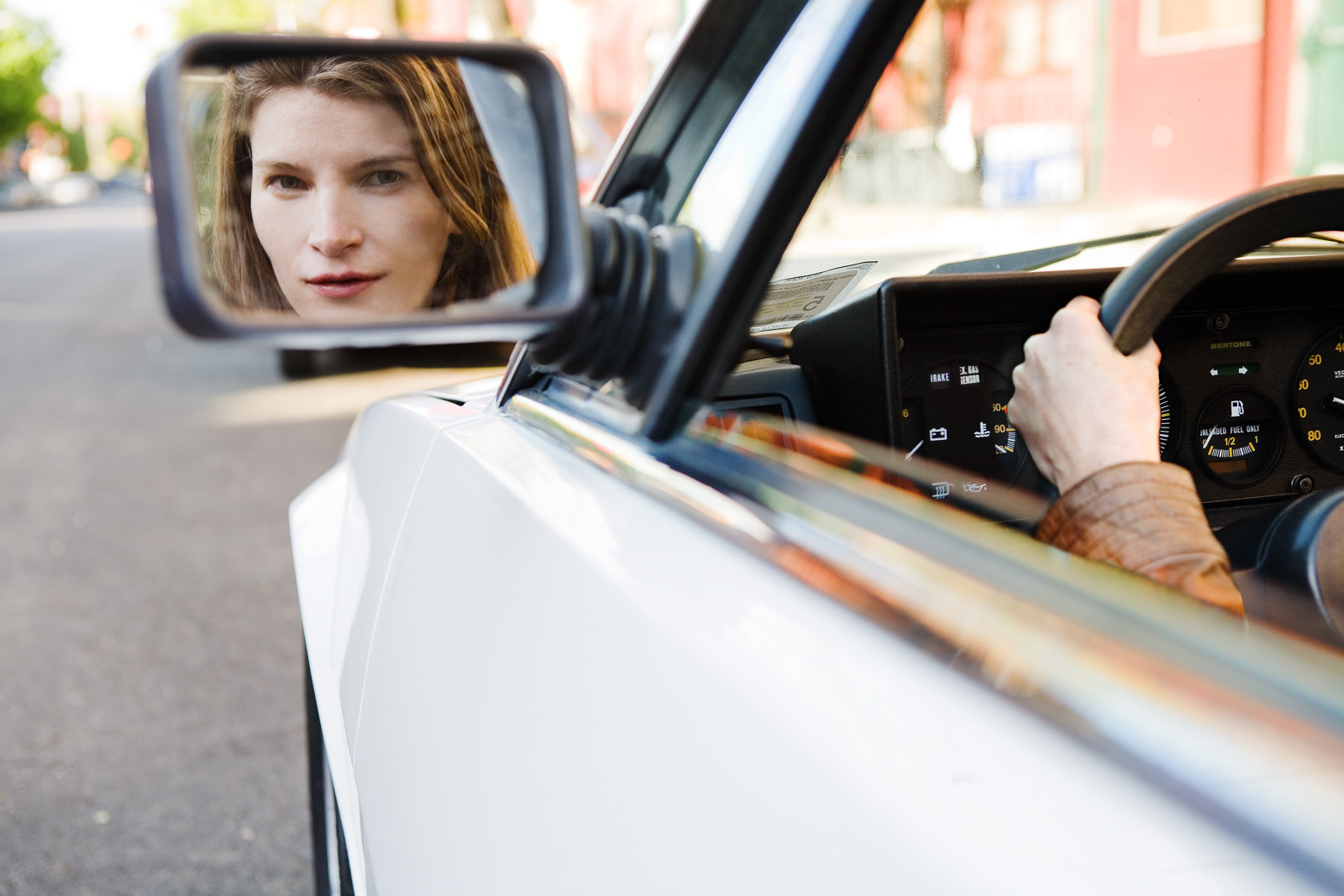 Ah, this is a fun one. Really love what you've done here. The reflection is great, obviously, but what I really love is your composition with her hand on the wheel. Good stuff.