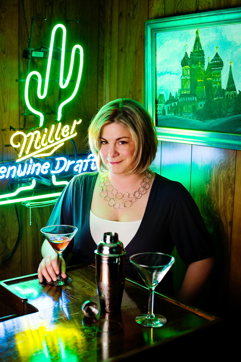 Your mischievous smile speaks volumes...and your painting and wood paneling adds another layer of mystique - are you sharing a cocktail with a Soviet diplomat or a Belarusian spy? And the neon sign is casting an inviting light across the whole scene (nice work Billy)...You can paint, make a great cocktail and look gorgeous. I'm in love with the bartender!