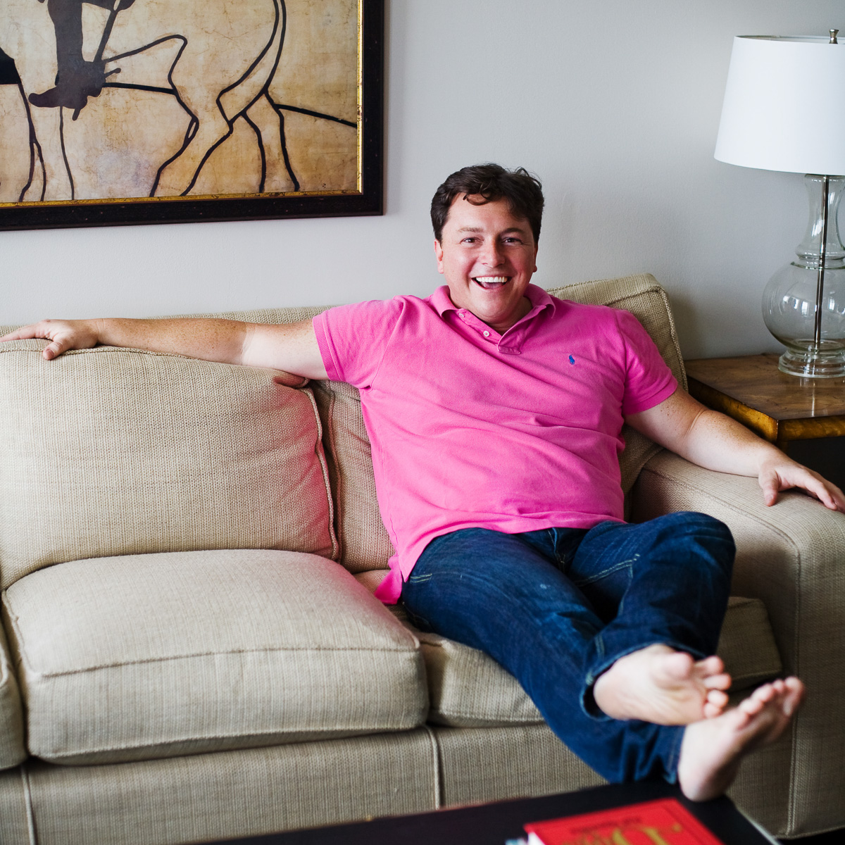 So far, so damn good. - Dan (the original one) - http://studyhumannature.blogspot.com/ Aw, this is so adorable! Michael is so happy and smiley. The pink shirt just adds to the... utter JOY of this photo! I love it. - Amy Michael Madden Stone! Great job, Bill -- you captured one of my oldest friends in the glory of his infectious smile & laugh. Ah, and the pink polo & bare feet. You go, Michael Madden! - nuno PS: Great 1st half, Bill. Here's to another great half! - nuno I have the same artwork in my living room! - amanda - www.amandawoodward.com Great life force here. Very relaxed, very open. =)
