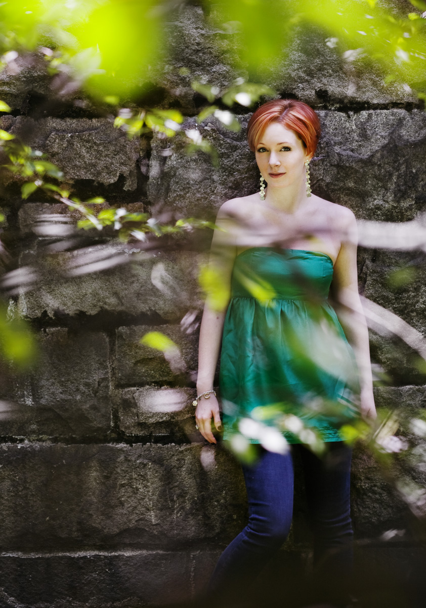 Love, love, love this photo. Love her red hair and porcelain skin, a real beauty! And the composition with the tree/branches/leaves. So pretty!