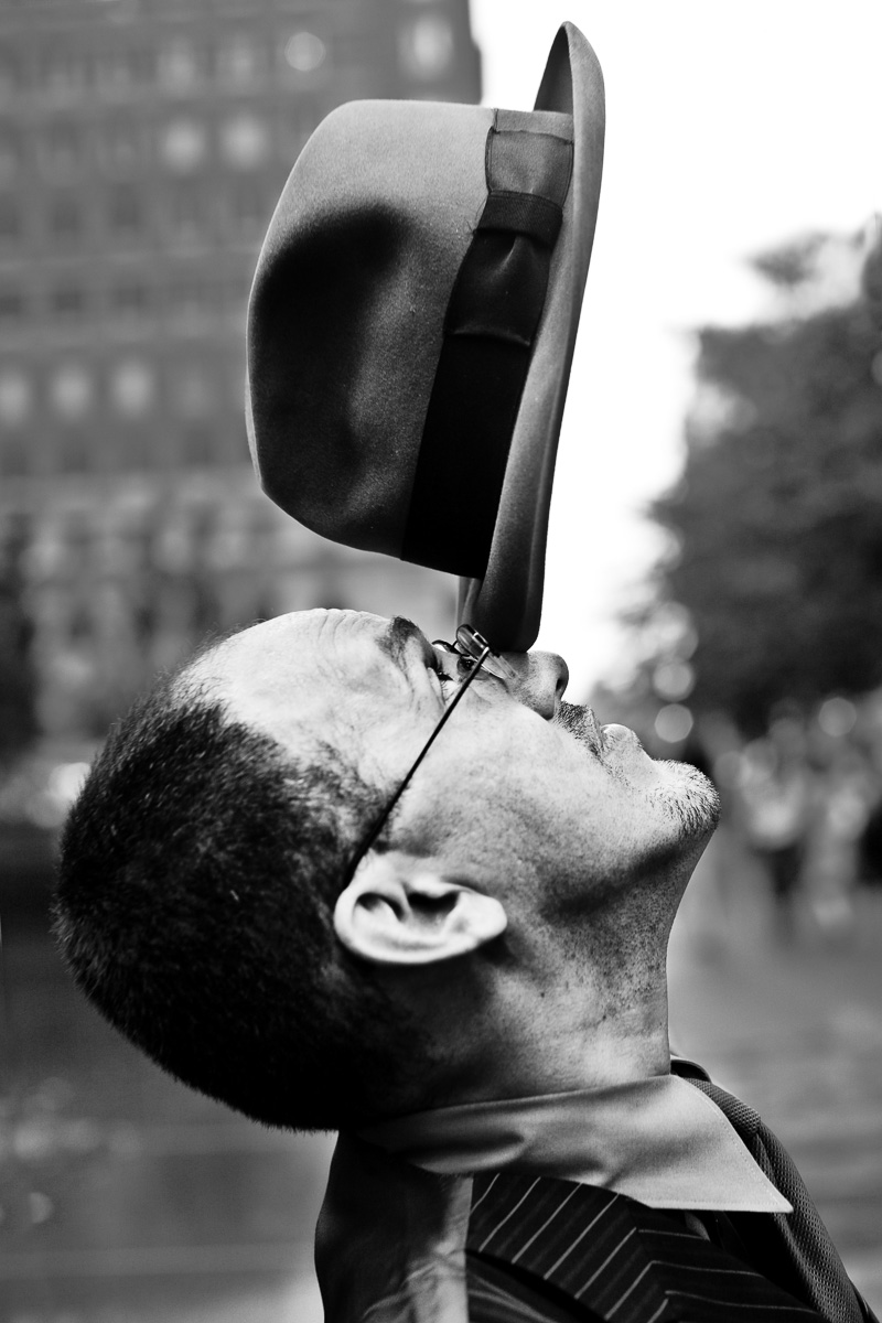 I love this photo - it is one that makes you look and look again because it is so curious and whimsical! - Sal oh, now that's fantastic. love the b&w. and I can't believe how crisp your portraits are. - zed - http://www.zaedryn.com It's just PERFECT!!! I love it- the look of concentration on Jose's face, the derby, the composition. Amazing photograph. - Diane funny - samsplanet I love this - it's both beautiful (the tones and the light, esp. on the hat) and funny. however, I think you're taking this Photoshopping thing too far, as you've clearly removed the wire holding the hat upright. - andrea - www.andreamann.com Nice. This is more like what I'm used to. Way to go back to the basics, Bill.