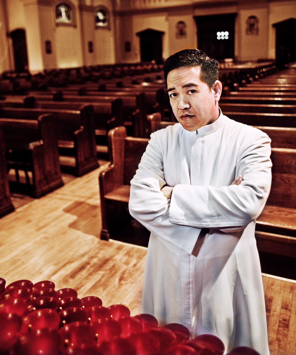 Time with him in the confessional will have you admitting to a lot! - Scott His stern look sets a strong tone for the photograph.