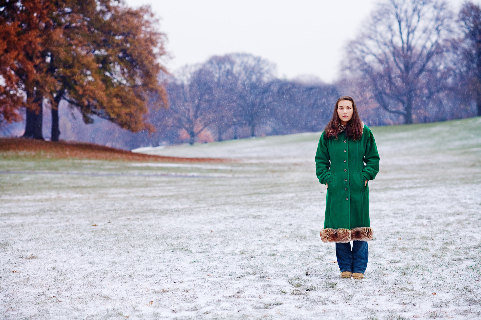 Yeah there is sort of a fantastical surreal quality about this - maybe the purplish hue of the trees... the velvet coat... and the model looks almost "pasted" into the scene (I know she wasn't) - which makes it look all the more otherworldly, like she was just transported there through a magic wardrobe... :) :)