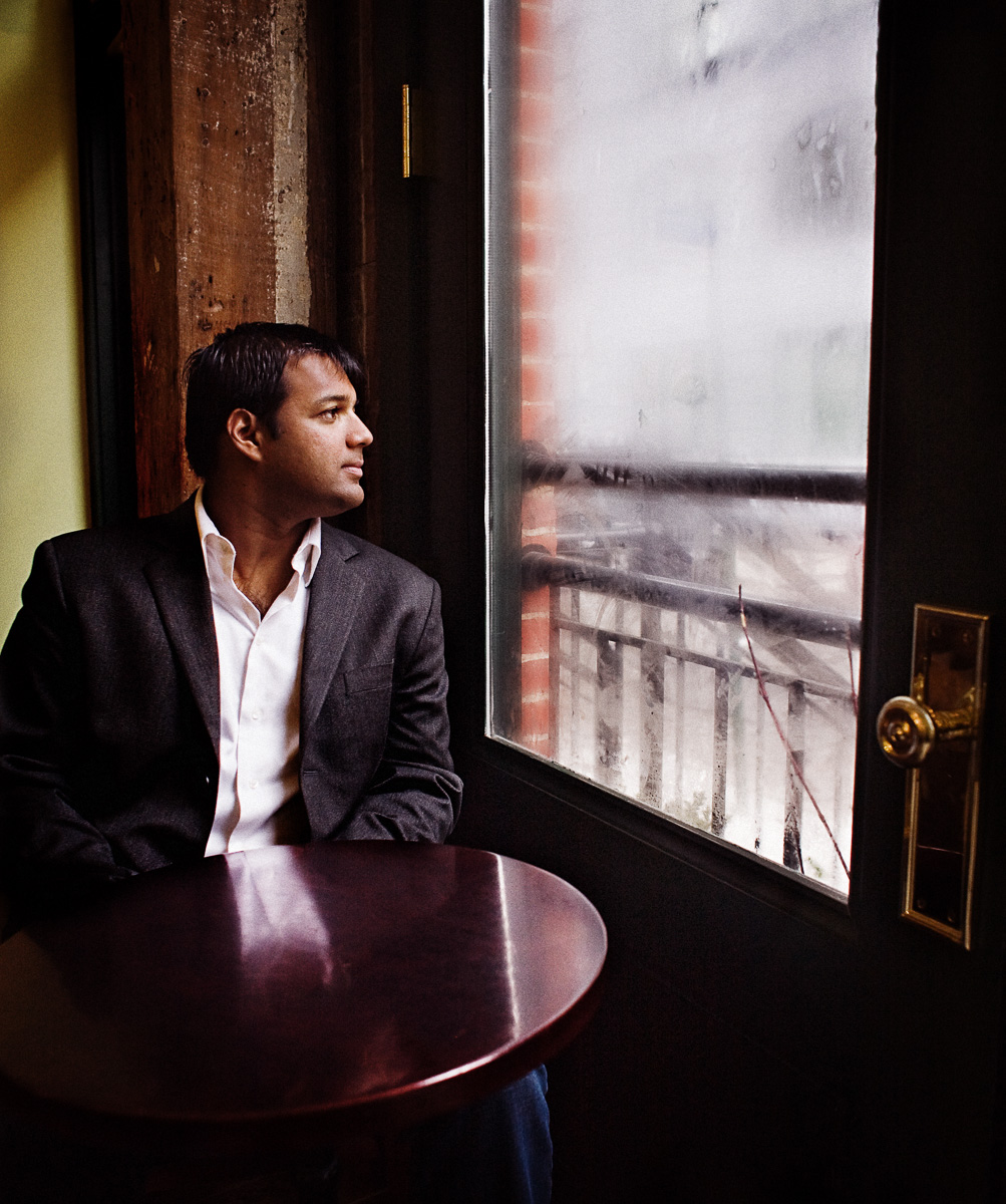 He's a million miles away! Superb lighting and composition. - shopaholicann Hm...he looks like he's waiting for someone, watching for them to come. - Jen ohh.. one of my favourites. I love all the different textures in this one: the wood, the table, the misted-up door pane. all so different but they work so well together. and a lovely expression you've captured. beautiful. - Andrea - www.andreamann.com Bill, it was a pleasure to meet you! Thanks so much for this chance. You made my 2007, and you didn't even know it!!! - Nik (the guy in the photo) - Nik G I love the warmth and the rich colors. I like Nikhil's reflection in the table and how it vanishes in a near mirror of his expression of being lost in contemplation. The frosted glass and the snow just on the other side adds so much. - James Curtis Smith - http://www.justjames.org I'm one of Nik's good friends, and I have to tell you that you captured him perfectly. I'm very impressed with this and your other portraits. Keep up the great work! - WK Absolutely you, Nik!! What a great shot. So warm and compelling. It's comfortable, but striking. Great work. Nice modeling! What an awesome opportunity, and creative project, too. - Jessica Christian - http://www.myspace.com/blueweebies You have taken so many "by the window" portraits, that I shouldn't be surprised anymore. But I am! I also think that this is the best of them all. To make sure I have reviewed them all, and really, this one is the best. I love that there is barely anything, unlike in the other photos, that would distract from the model - the window, the table, the wall and the model - nothing too distracting. I love it. I like his reflection in the table too. This one is really good. - Ela oh! the textures and the clarity of colors. the wood especially - behind nik. wow. what lovely differences. and such a gorgeous subject, too. - rebecca I love everything about the portrait. The texture, the wood, the frosted glass, Nikhil's reflection and most importantly his expression. One feels as if he is looking outside and thinking 'when will this mist vanish and sunlight come in my life'. I have never seen Nikhil look so dense. Awesome work. - Pooja Romantic. A happy longing comes across. As if he has what he wants and just wants it to continue.
